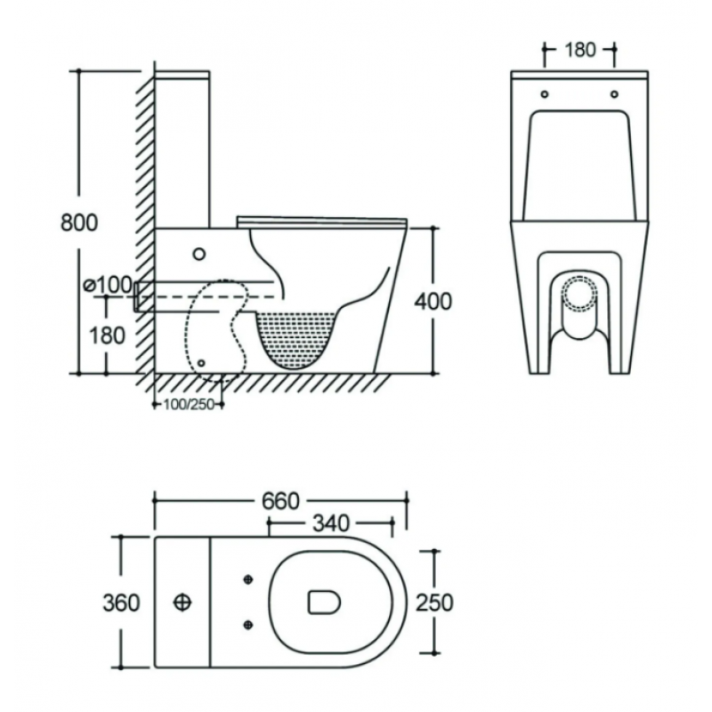 • Прилегание унитаза к стене: