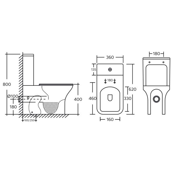 • Прилегание унитаза к стене: