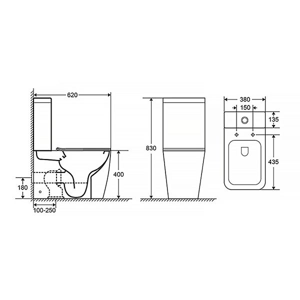 • Прилегание унитаза к стене: