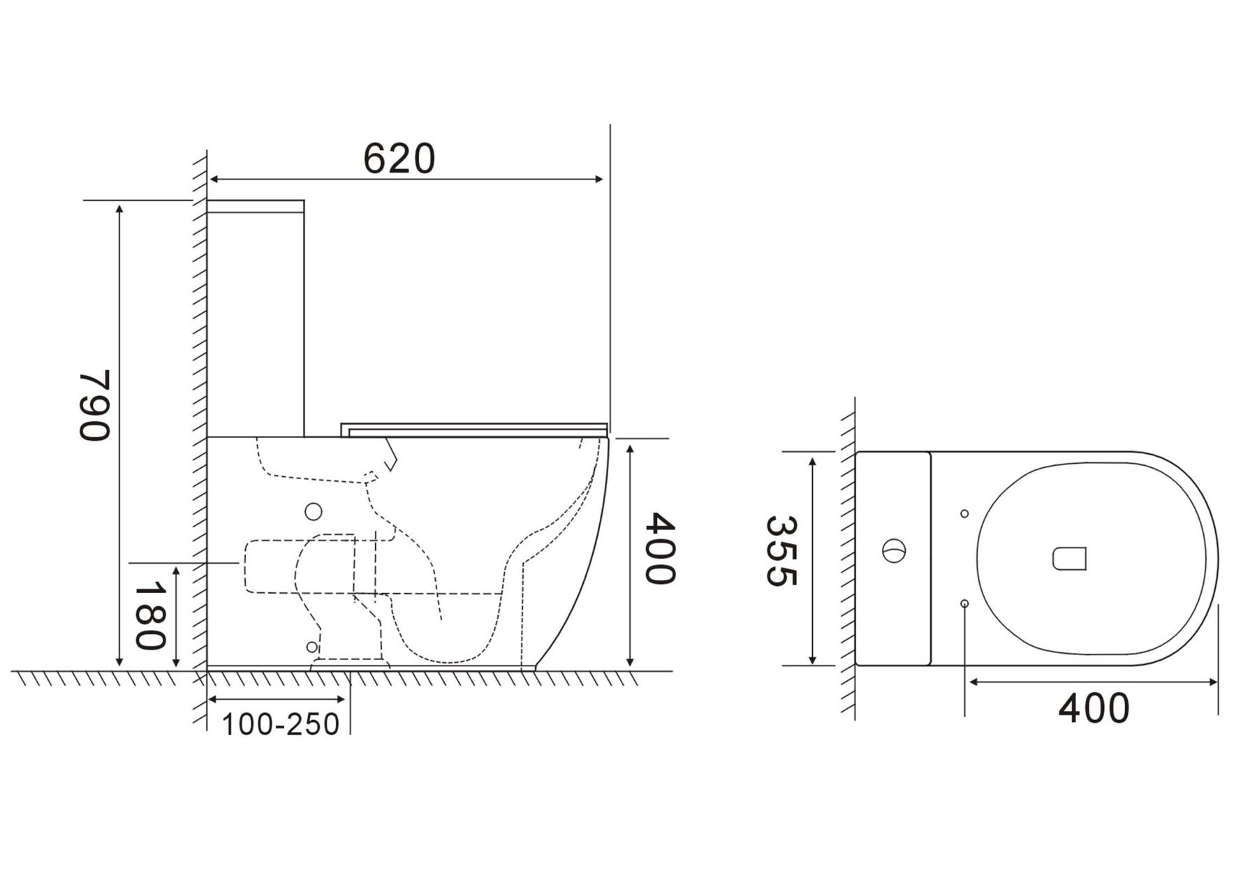 Прилегание унитаза к стене:вплотную