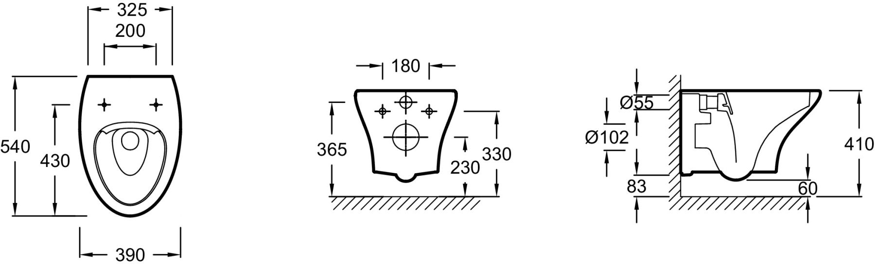 • Прилегание унитаза к стене: