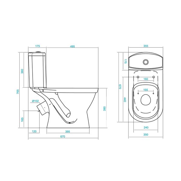 Унитаз напольный Santek - Алькор с сиденьем полипропилен с диагональным выпуском «Антивсплеск», с двухрежимной арматурой Уклад.