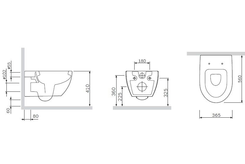 • Прилегание унитаза к стене: