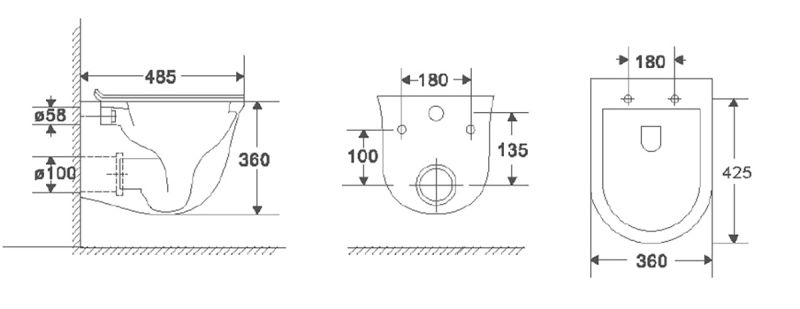 • Прилегание унитаза к стене: