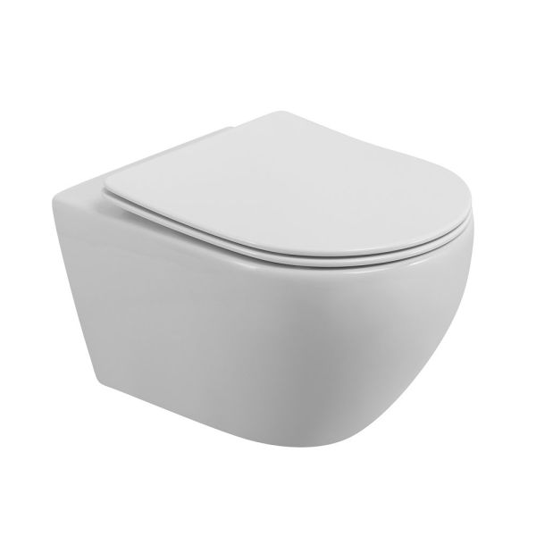 Унитаз подвесной Cezares Stream CZR-2426-TH-TOR/SC безободковый со смывом торнадо и крышкой-сиденьем микролифт белый