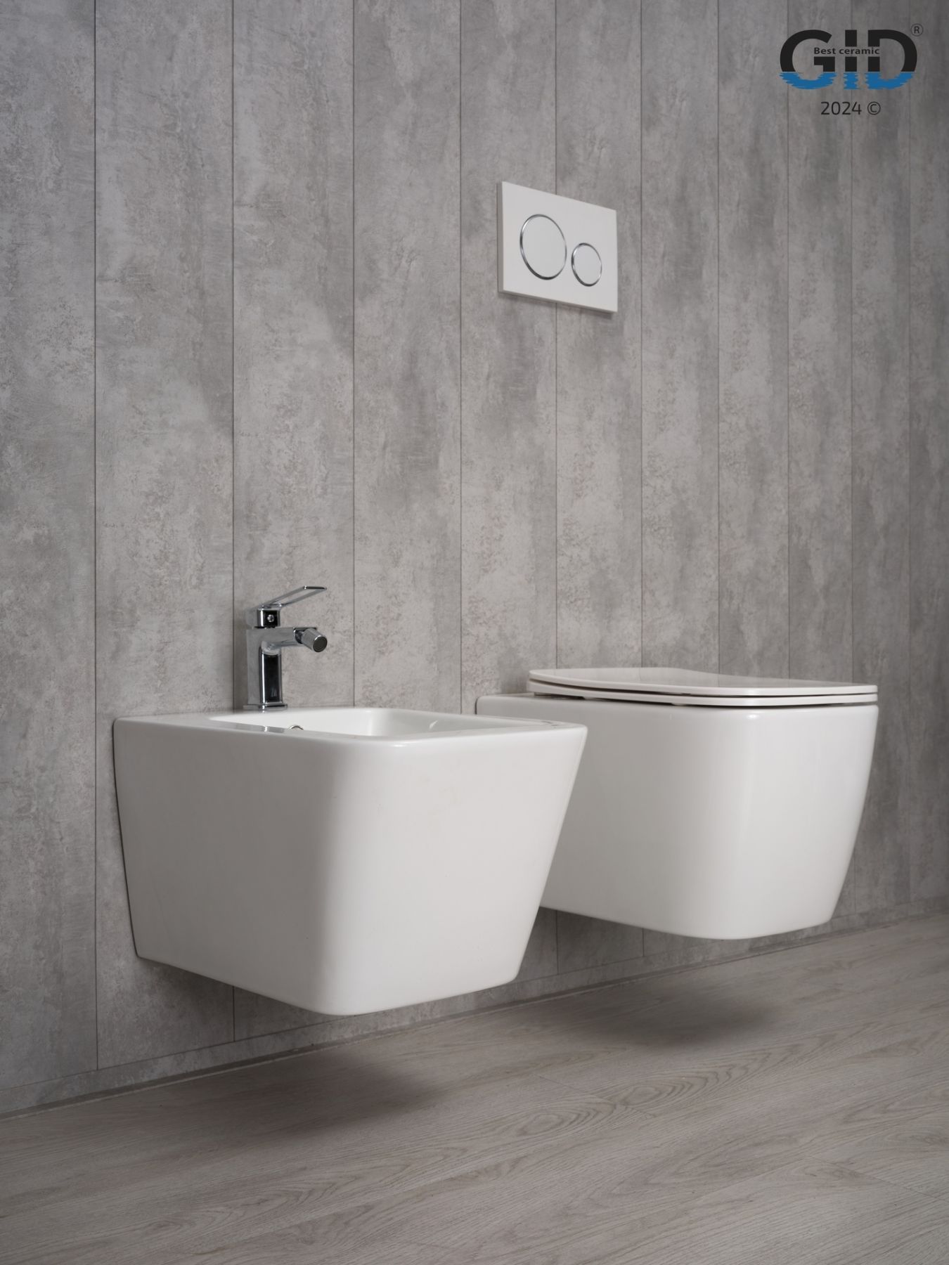 Серия Cuadrado — образец современного дизайна и испанского качества. Соответствие европейским стандартам гарантирует их долговечность. Подвесной безободковый унитаз GiD Tr2140 - это модель с горизонтальным выпуском, выполненная из мелкопористой керамики в белом глянцевом цвете. Оснащена быстросъёмным сиденьем из дюропласта с функцией микролифта, обеспечивающей плавное и бесшумное опускание крышки. Благодаря антигрязевому покрытию и воронкообразной квадратной чаше унитаз обеспечивает высокий уровень гигиены и легкость ухода. Комплект: подвесной унитаз GiD Tr2140 с креплениями для скрытого монтажа; сиденье с креплениями.