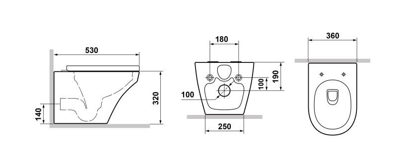 • Прилегание унитаза к стене: