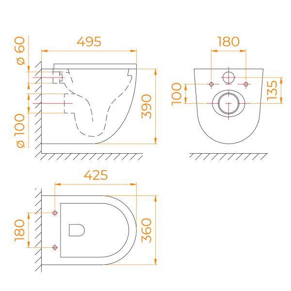 Прилегание унитаза к стене:вплотную