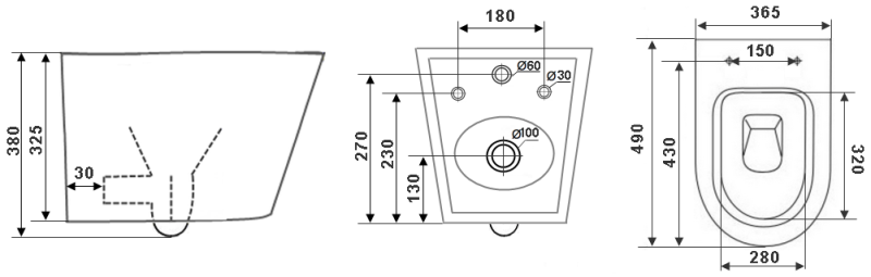 • Прилегание унитаза к стене: