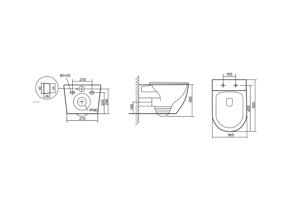• Прилегание унитаза к стене: