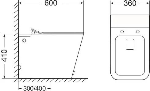• Прилегание унитаза к стене: