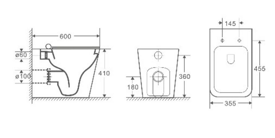 • Прилегание унитаза к стене: