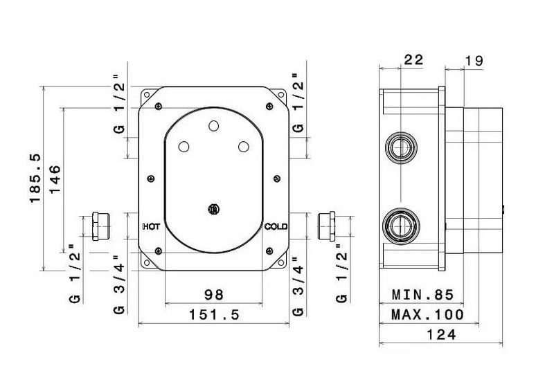 Внутренняя часть для термостатического кнопочного смесителя ETERNA на два потока (70426EXKM) предназначена для встройки в стену, выполнена из латуни.