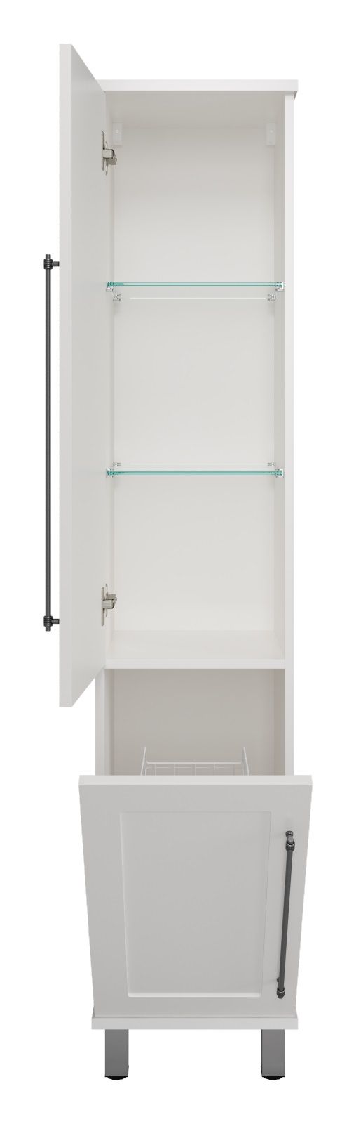 Универсальный шкаф - пенал Misty Марта 35см левый с бельевой корзиной белый