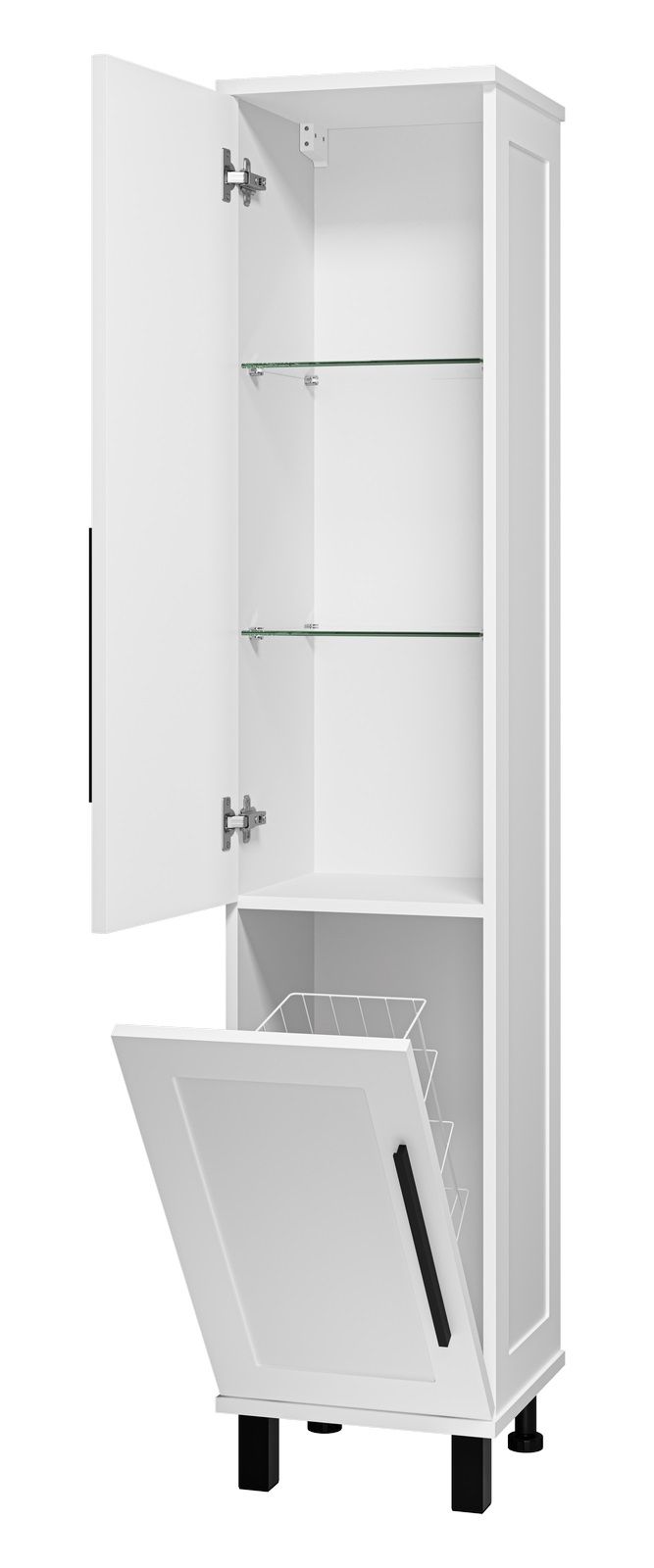 Универсальный шкаф - пенал Misty Модерн 35см с бельевой корзиной левый белый