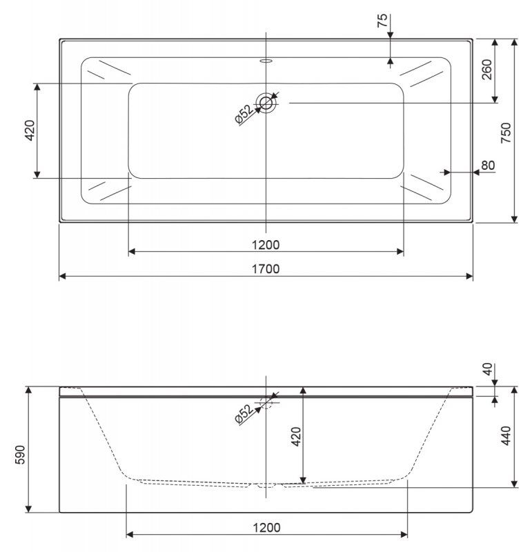 Ванна акриловая Cezares PLANE MINI-170-75-42-W37