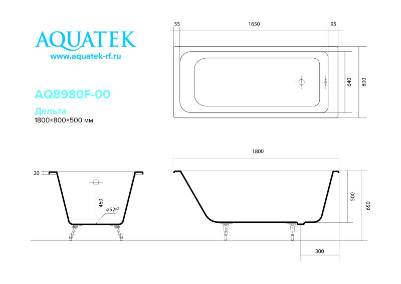Ванна чугунная Aquatek Дельта AQ8980F-00 180х80 см