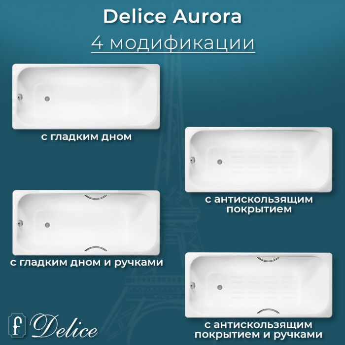 Ванна чугунная Delice Aurora DLR230603-AS 150x70 с антискользящим покрытием купить