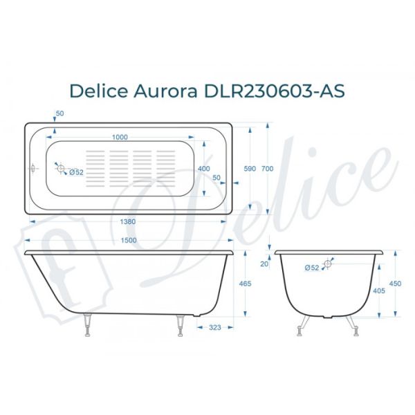 Ванна чугунная Delice Aurora DLR230603-AS 150x70 с антискользящим покрытием