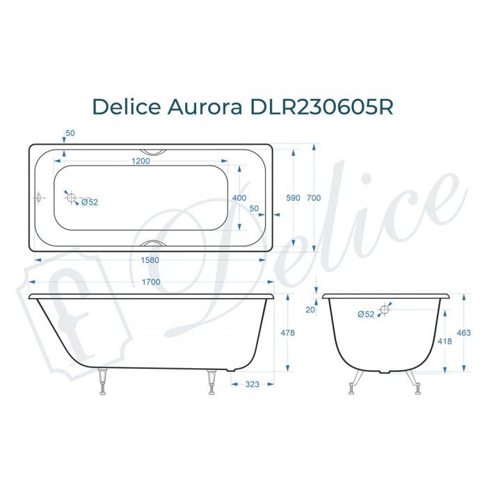Ванна чугунная Delice Aurora DLR230605R 170x70 с отверстиями под ручки купить