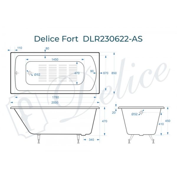 Ванна чугунная Delice Fort DLR230622-AS 200х85 с антискользящим покрытием