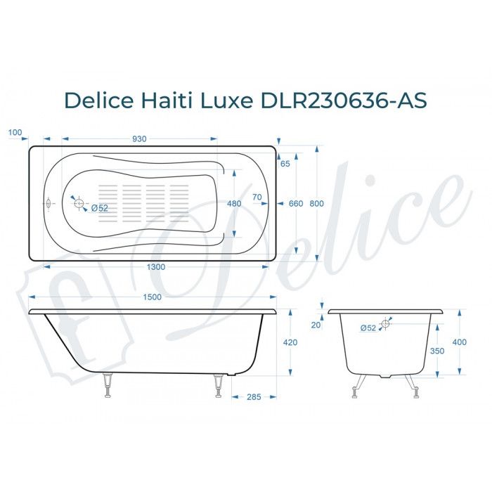 Ванна чугунная Delice Haiti Luxe DLR230636-AS 150х80 с антискользящим покрытием купить