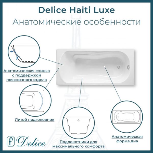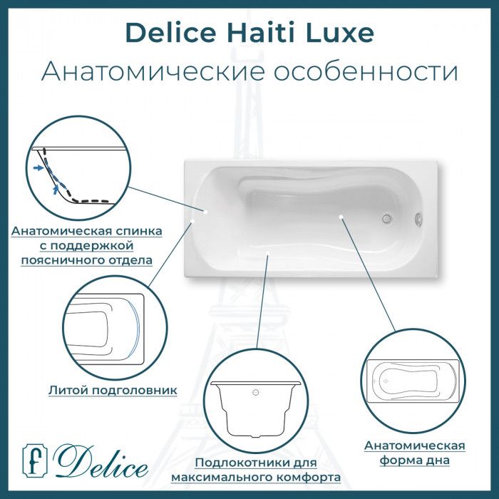 Ванна чугунная Delice Haiti Luxe DLR230639R 180х80 с отверстиями под ручки купить