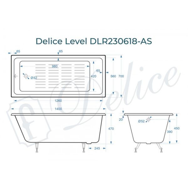 Ванна чугунная Delice Level DLR230618-AS 140х70 с антискользящим покрытием
