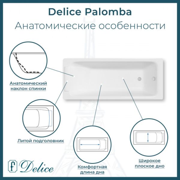 Ванна чугунная Delice Palomba DLR230620R 170х70 с отверстиями под ручки купить