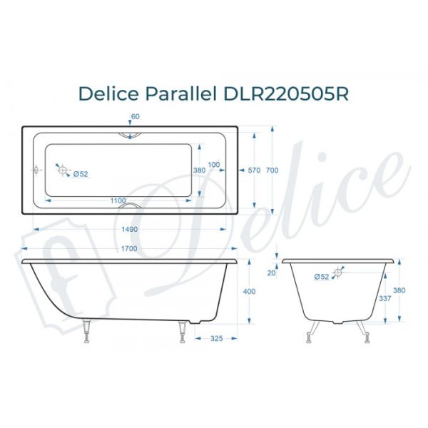 Ванна чугунная Delice Parallel DLR 220505R 170x70 с ручками купить