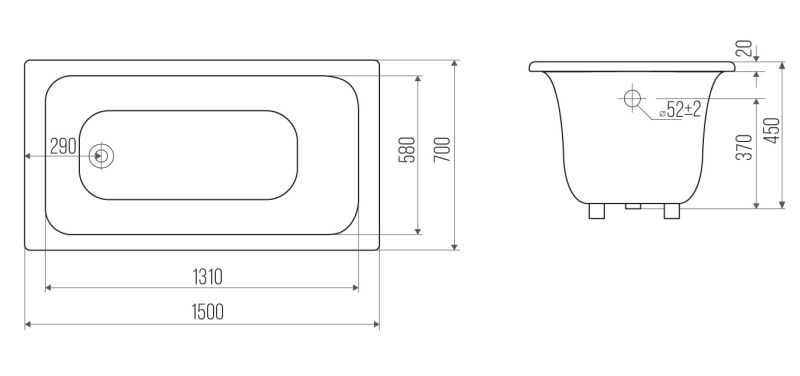 Ванна чугунная Goldman Real RL15070 150x70см с ножками