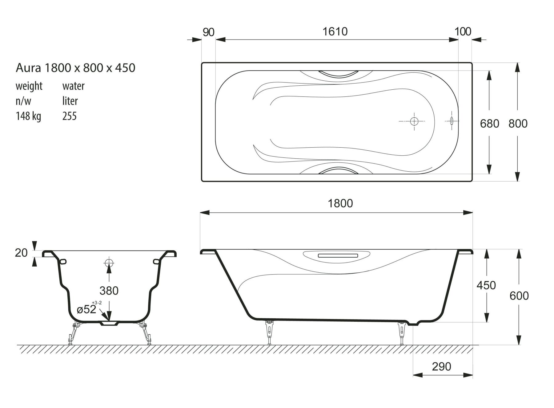 Общие характеристикиРазмер 180x80 Длина 180 см Ширина 80 см Глубина 45 см Высота на ножках 60 см Полезный объём 355 л Вес 148 кг Бренд Vinsent Veron 7 слёв титановой эмали класса 1А Цвет эмали белый Без антискользящего покрытия Диаметр слива Ø52 Расположение перелива стандартное