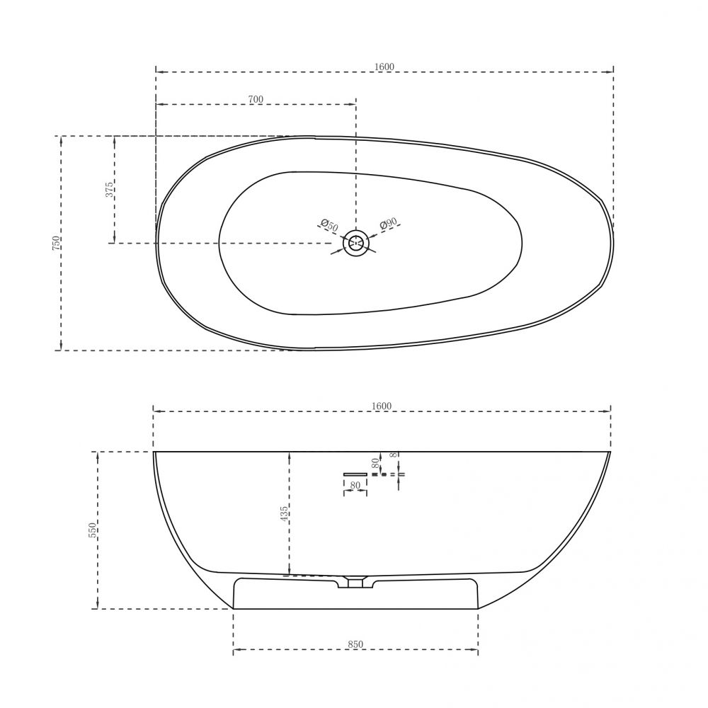 Ванна из искусственного камня ABBER Stein AS9611-1.6 160x75см белый матовый