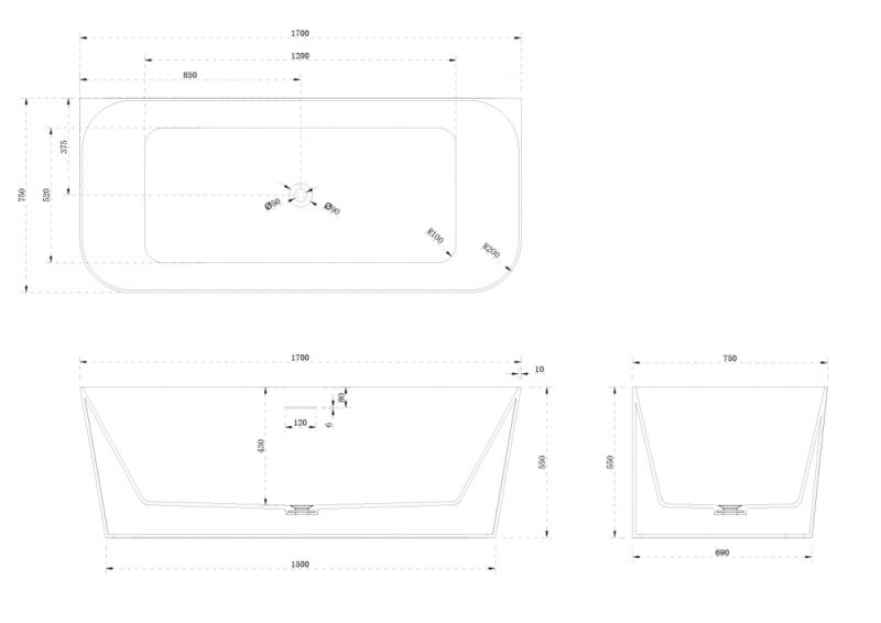 Ванна из искусственного камня ABBER Stein AS9617 170x75см белый матовый