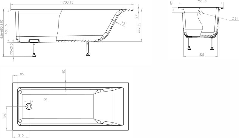 Ванна из искусственного камня AquaStone Арма 170x70см белый