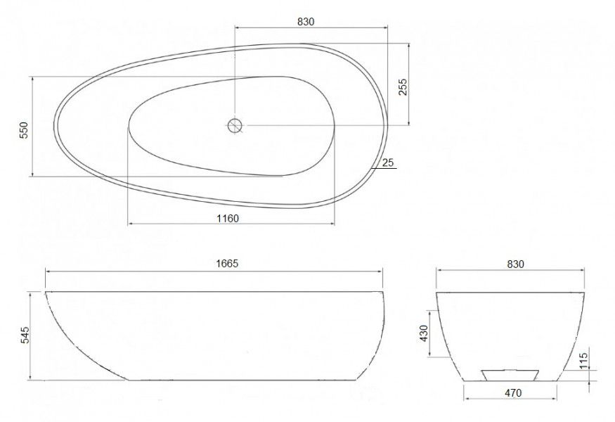 Ванна из искусственного камня AquaStone Бона 166x83см белый