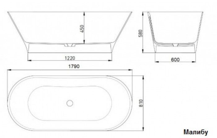 Ванна из искусственного камня AquaStone Малибу 179x81см белый купить