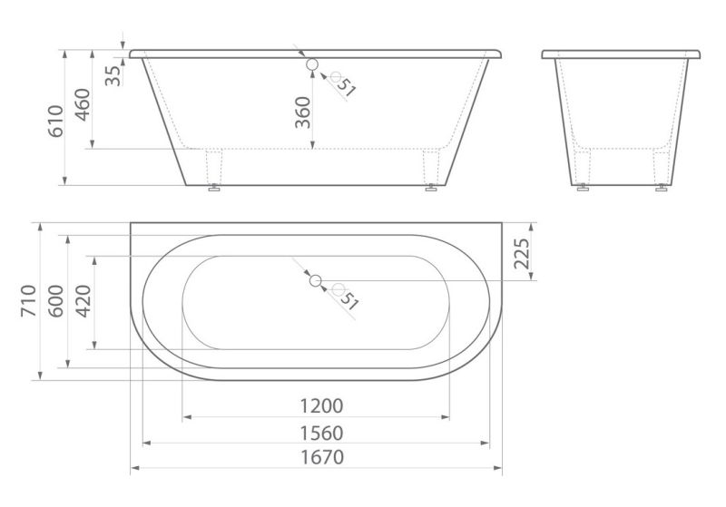 • Глубина ванны — 460 мм