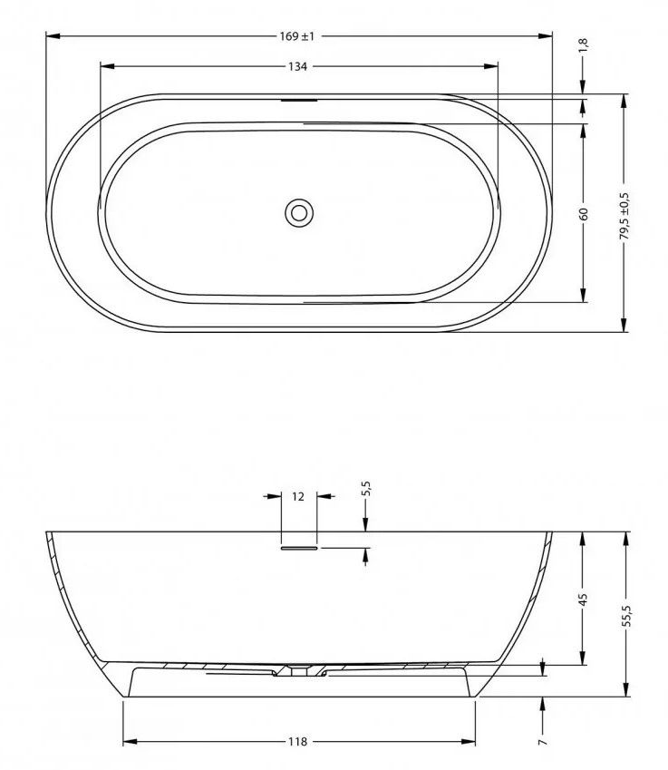 Слив-перелив уже установлен: перелив выполнен в виде удлинённой щели, слив - в виде нажимного клапана Push-Open такого же матового цвета, как и ванна.