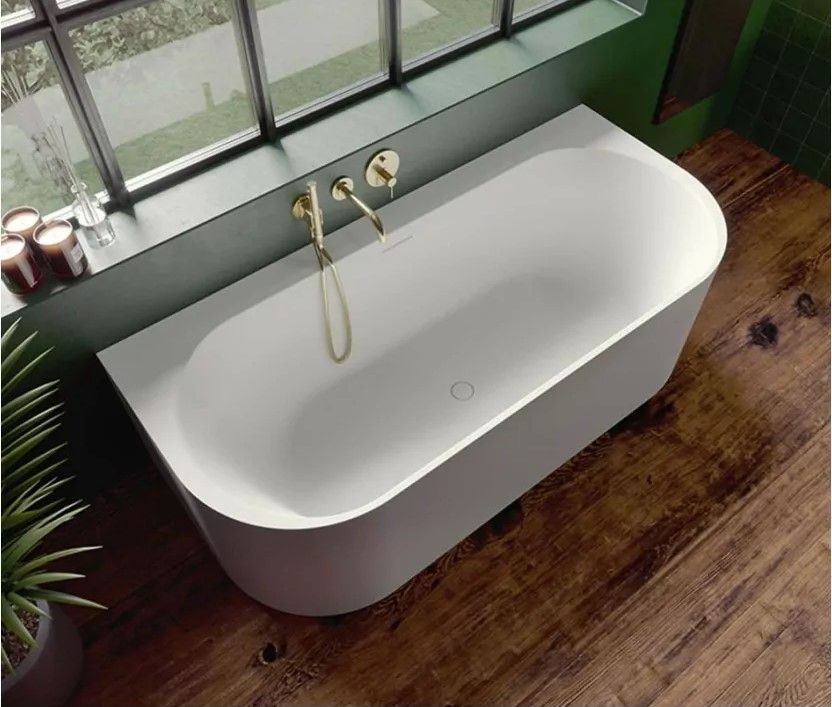 Ванна Solid Surface RIHO Valor Back-2-Wall 180x80 - пристенная композитная ванна, изготовленная из однородной каменной массы - каменная на ощупь, тёплая внутри. Это имитация мрамора: белый матовый цвет ванны при наполнении водой заиграет оригинальной текстурой камня.Твёрдая поверхность ванны устойчива к механическим повреждениям, гигиенична и химически нейтральна.