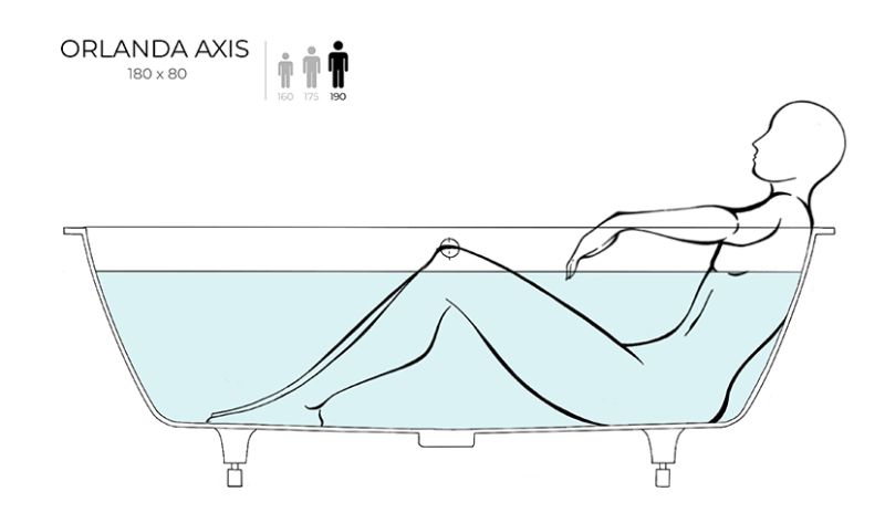 ORLANDA AXIS KIT 180 – универсальная ванна Salini из литого камня.Она предназначена как для полного или частичного встраивания, так и для любой установки — пристенной, угловой или отдельно стоящей. Ванна характеризуется одинаковым уклоном бортов и расположенными посередине сливом-переливом и донным клапаном. Название модели Axis («Ось») отражает характерную симметрию ванны во фронтальной проекции. Преимущества
