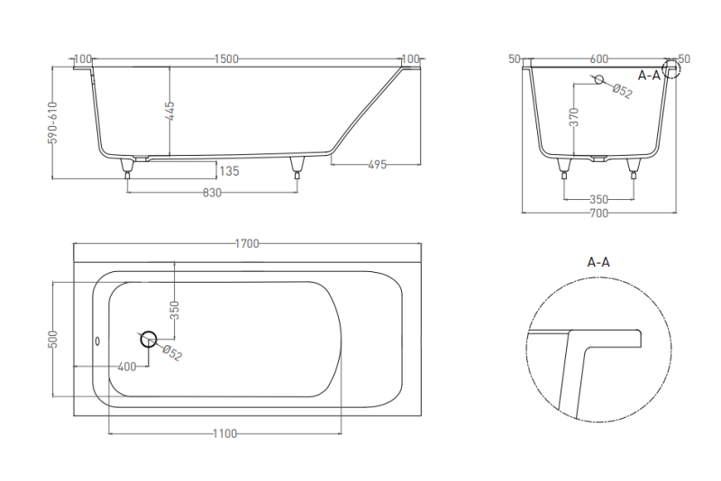 Ванна из искусственного камня Salini Orlanda S-Stone 102021MRF 170x70см RAL полностью