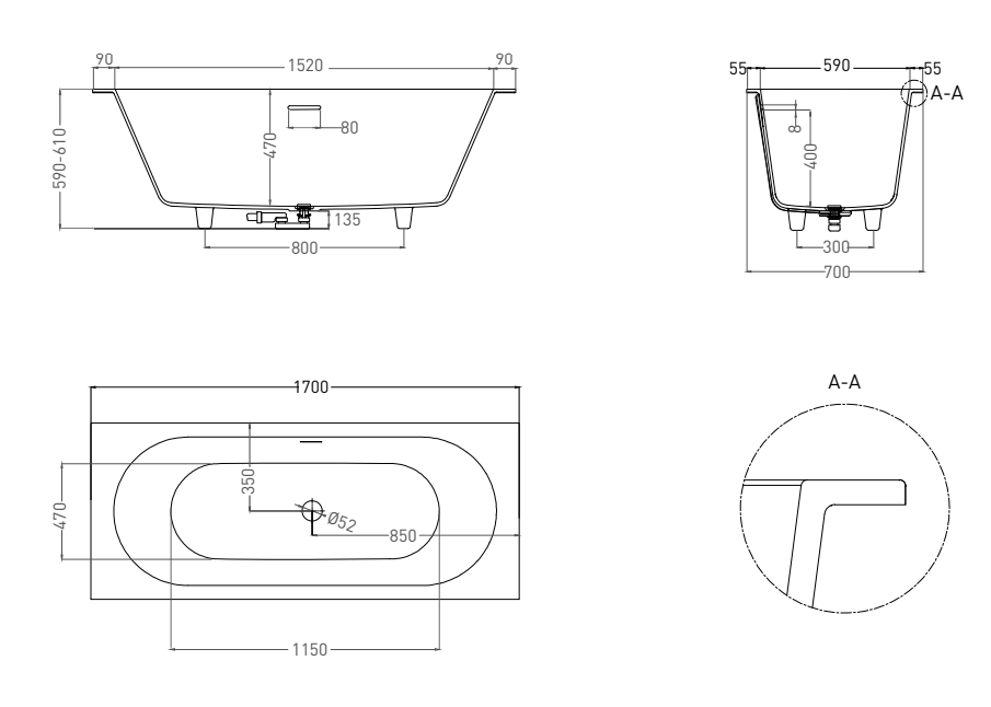 Она предназначена как для полного или частичного встраивания, так и для пристенной или угловой установки. Ванна характеризуется одинаковым уклоном бортов и расположенными посередине сливом-переливом и донным клапаном. Название модели Axis («Ось) отражает характерную симметрию ванны во фронтальной проекции.По индивидуальному запросу ванны из материала S-Sense могут быть оснащены любым количеством декоративных экранов для установки у стены или в углу. Экраны, изготовленные из того же материла, что и ванна, придают изделию законченный вид без видимых стыков и соединенийПреимущества