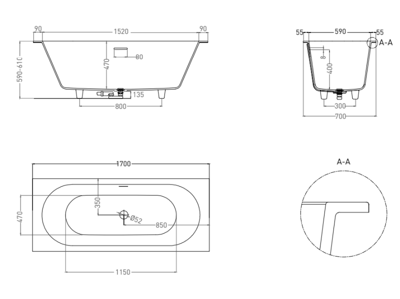 ORNELLA AXIS KIT 170 — самая универсальная ванна Salini из литого камня.Она предназначена как для полного или частичного встраивания, так и для пристенной или угловой установки. Ванна характеризуется одинаковым уклоном бортов и расположенными посередине сливом-переливом и донным клапаном. Название модели Axis («Ось) отражает характерную симметрию ванны во фронтальной проекции.По индивидуальному запросу ванны из материала S-Sense могут быть оснащены любым количеством декоративных экранов для установки у стены или в углу. Экраны, изготовленные из того же материла, что и ванна, придают изделию законченный вид без видимых стыков и соединений. Преимущества