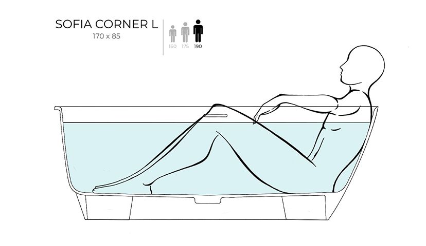 Угловая модификация популярной модели SOFIA оптимизирует пространство ванной комнаты. Купаться и принимать душ одновременно — нет ничего проще.