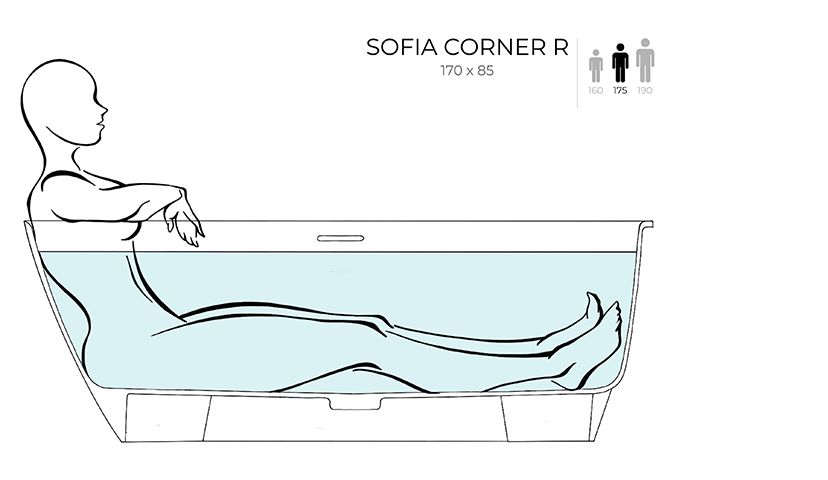 Угловая модификация популярной модели SOFIA оптимизирует пространство ванной комнаты. Купаться и принимать душ одновременно — нет ничего проще.