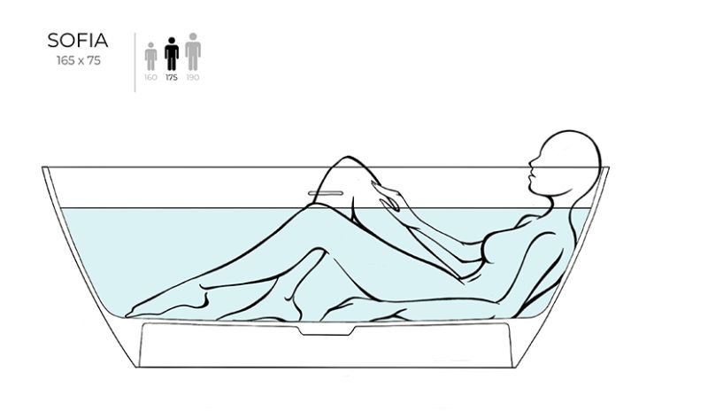 Ванна SOFIA хорошо смотрится как у стены, так и в центре комнаты — особенно в сочетании с удобной раковиной современного силуэта из этой же серии. Преимущества