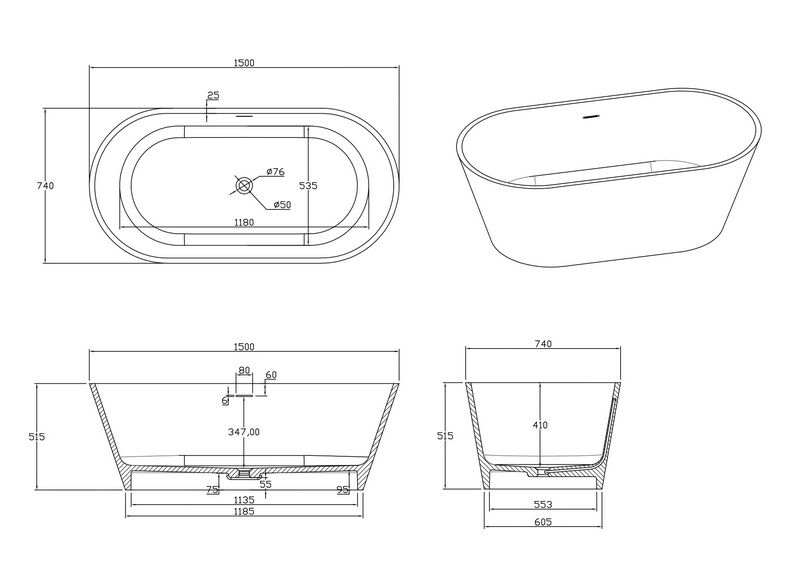 Поверхность ванны приятная на ощупь и не холодная благодаря низкому уровню теплопроводности, что делает процесс эксплуатации очень приятным.