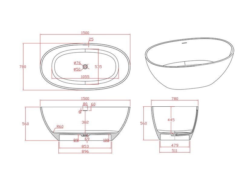 Поверхность ванны приятная на ощупь и не холодная благодаря низкому уровню теплопроводности, что делает процесс эксплуатации очень приятным.