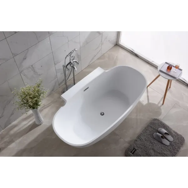 Поверхность ванны приятная на ощупь и не холодная благодаря низкому уровню теплопроводности, что делает процесс эксплуатации очень приятным.